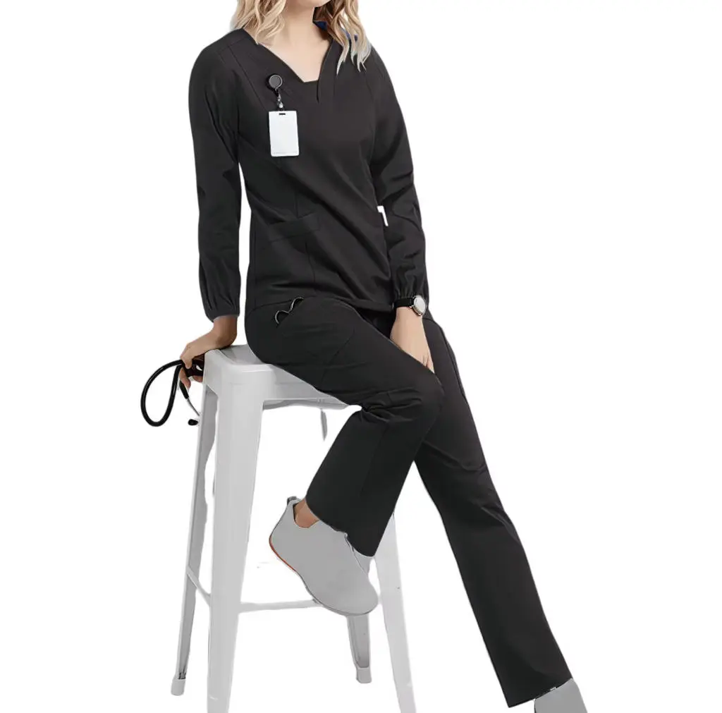 Comfortable stretchy hospital uniform scrubs V-neck short sleeve